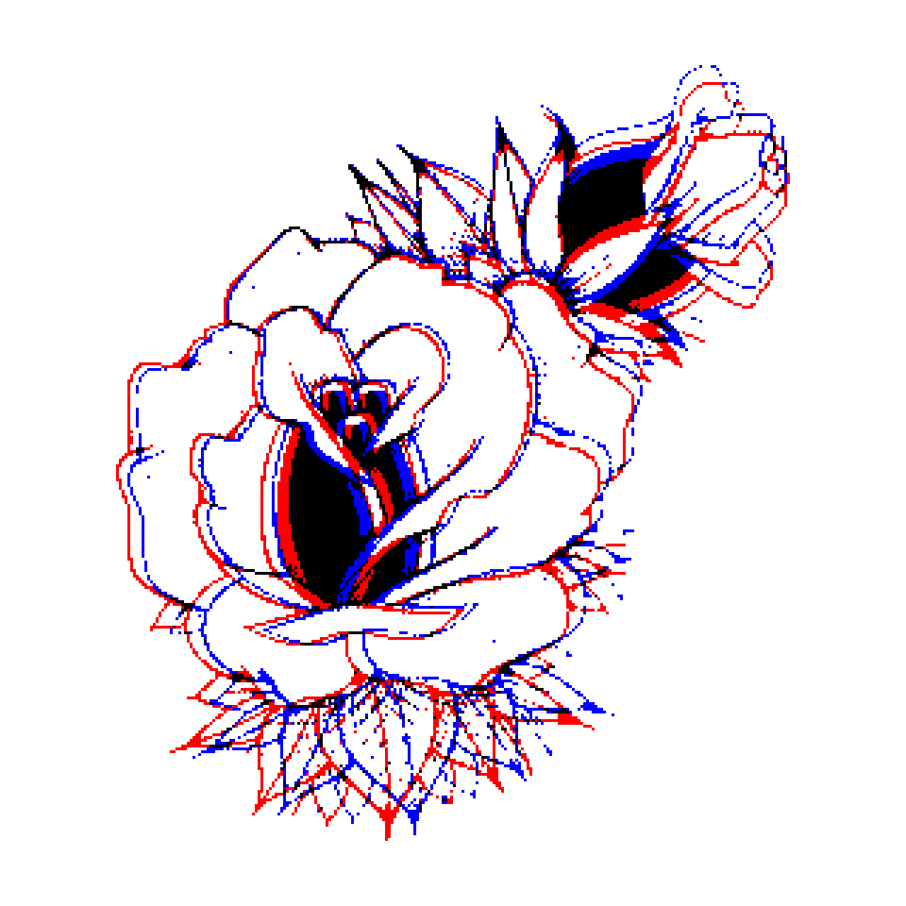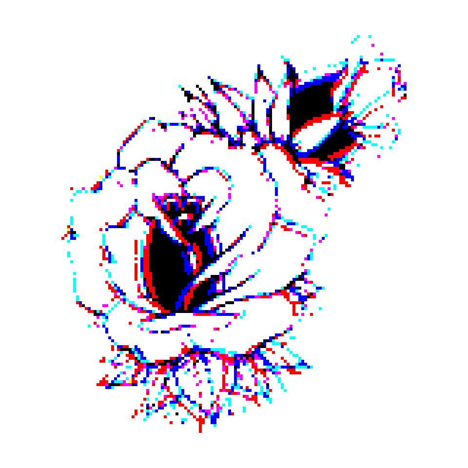 Glitch reworkings of a 3D flower image by