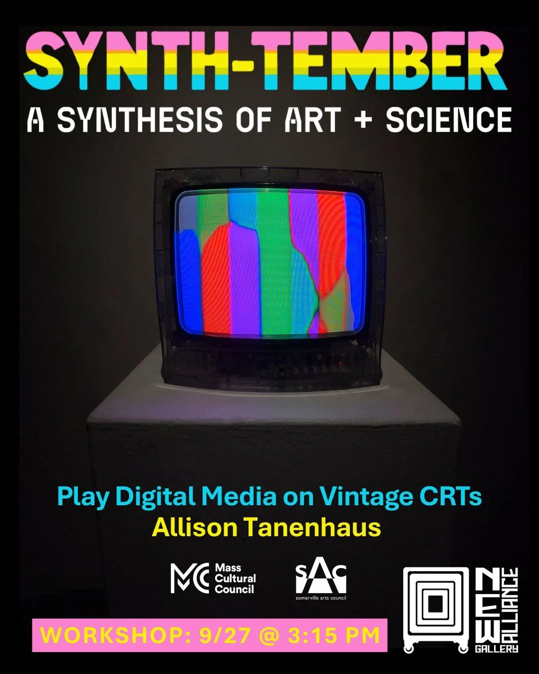 • And also come to Community Day on Saturday, September 27, 12–6 pm. I’ll be giving a workshop at 3:15 pm on playing contemporary media on old-school TVs. Thanks to the Mass Cultural Council and Somerville Arts Council for supporting this 2025 SAC Artist Fellowship Community Benefit Project!